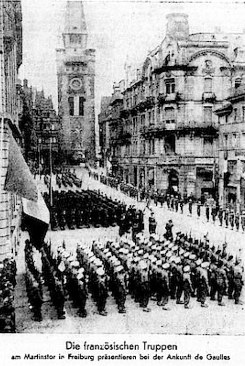 Und Freiburg? Am 21. April 1945, einen Tag nach Führers Geburtstag, hatten die Franzosen bereits Freiburg nicht etwa zum fünften Mal erobert, sondern waren einfach mit dem 2. Regiment der Chasseurs d'Afrique in die Ruinen der Altstadt einmarschiert.
